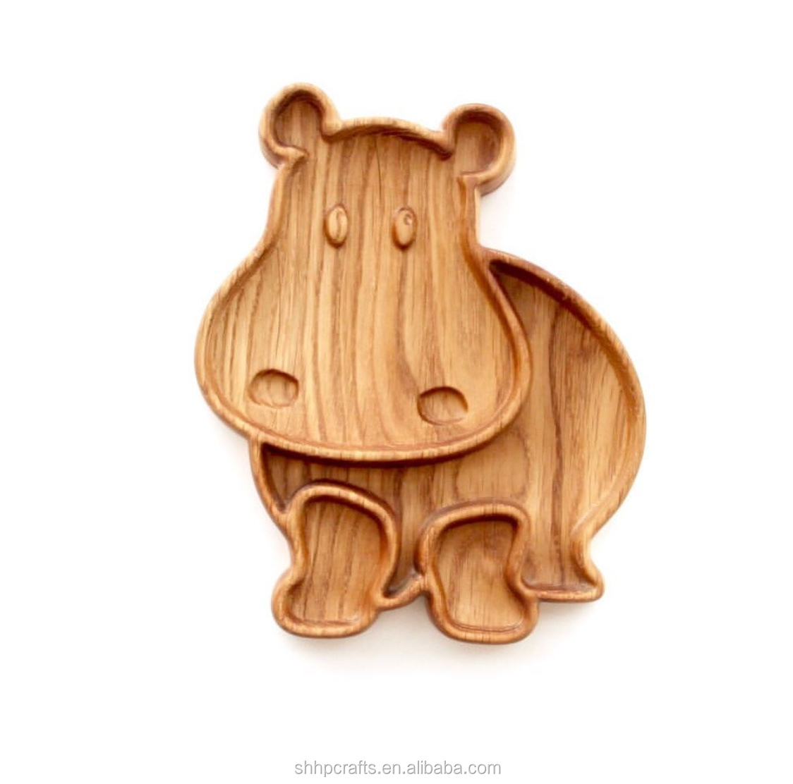 Wooden Cartoon Tray - Natural Beech Wood Plate Dinner Dishes for Children Kids Toddler